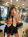 Chaleco beige con apliques brillantes en diseño geométrico, ideal para darle un toque moderno y sofisticado a tus looks.