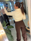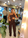 Jean en tono café con diseño elegante y brillos, Su acabado y textura lo hacen ideal para looks casuales o semi formales, combinando fácilmente con blusas, camisetas o chaquetas.