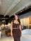 Top crop en encaje café, delicado y ajustado, ideal para un look femenino y sofisticado.