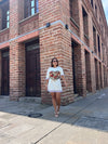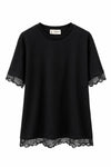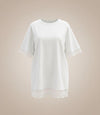 Nuestro vestido confeccionado en una tela suave y ligera, combina la simplicidad de un básico con la delicadeza de un acabado perfecto. Sus mangas y borde inferior adornados con encaje floral crean una silueta sofisticada y moderna, es la pieza perfecta para elevar cualquier look con naturalidad y estilo.
