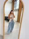 Jean barreal efecto acid wash, tiro alto y caída relajada para un look moderno y cómodo.