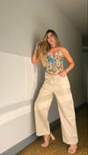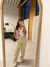 Pantalón beige en polipiel con resorte en la cintura, cómodo y moderno, con acabado suave y efecto cuero que eleva cualquier look casual o chic.