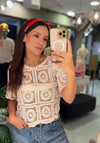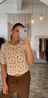 Lleva la esencia artesanal a tu clóset con nuestro top de edición especial. Esta prenda esta elaborada en tejido de crochet en hilo de algodón premium, que destaca por su diseño de cuadros tipo mandala. Su corte crop y mangas holgadas lo convierten en una prenda ideal para días de sol o eventos casuales con un toque chic.