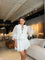 Vestido blanco con delicados detalles 3D en flores, mangas abullonadas y falda ligera para un look romántico y fresco.