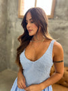 Vestido corto con textura, con escote en V y falda con vuelo que resalta un estilo fresco y femenino.
