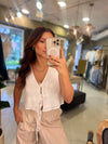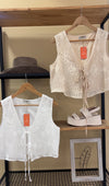 Chaleco tejido, ligero y fresco, con amarre frontal para un look casual y veraniego.