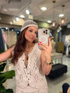 Gorro tejido en crochet color beige, ligero y versátil, ideal para un look fresco y bohemio.