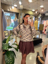 Sweater tejido en tonos tierra con diseño jaspeado, textura suave y silueta relajada. Perfecto para un look casual y acogedor con un toque moderno.