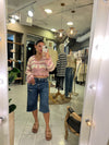Sweater en tonos rosados y beige, con diseño calado y botones frontales. Ideal para un look fresco y moderno.