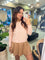 Buzo rosa en tejido suave, con detalle de lazos y perlas en el frente, ideal para un look femenino y delicado.