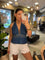 Blusa tipo halter en denim con escote profundo y detalles de taches metálicos, perfecta para un look moderno y atrevido.